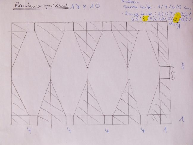 Es handelt sich um eine Box- fast ohne Kleben. Die Seitenteile sind raffiniert zusammengefaltet. Wie das geht, könnt ihr in meinem Video sehen. Wenn ihr auf das Foto klickt, seht ihr die Skizze! Viel Spass beim Nachwerkeln.