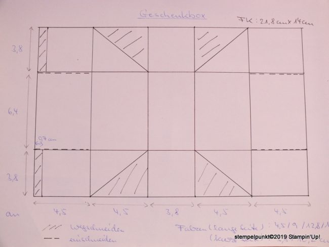 Diese Box ist für den Vatertag geeignet. Mit anderem designerpapier wird daraus auch schnell eine Box für den Muttertag oder für jede andere Gelegenheit. Hier ist die Skizze für die Grundbox: