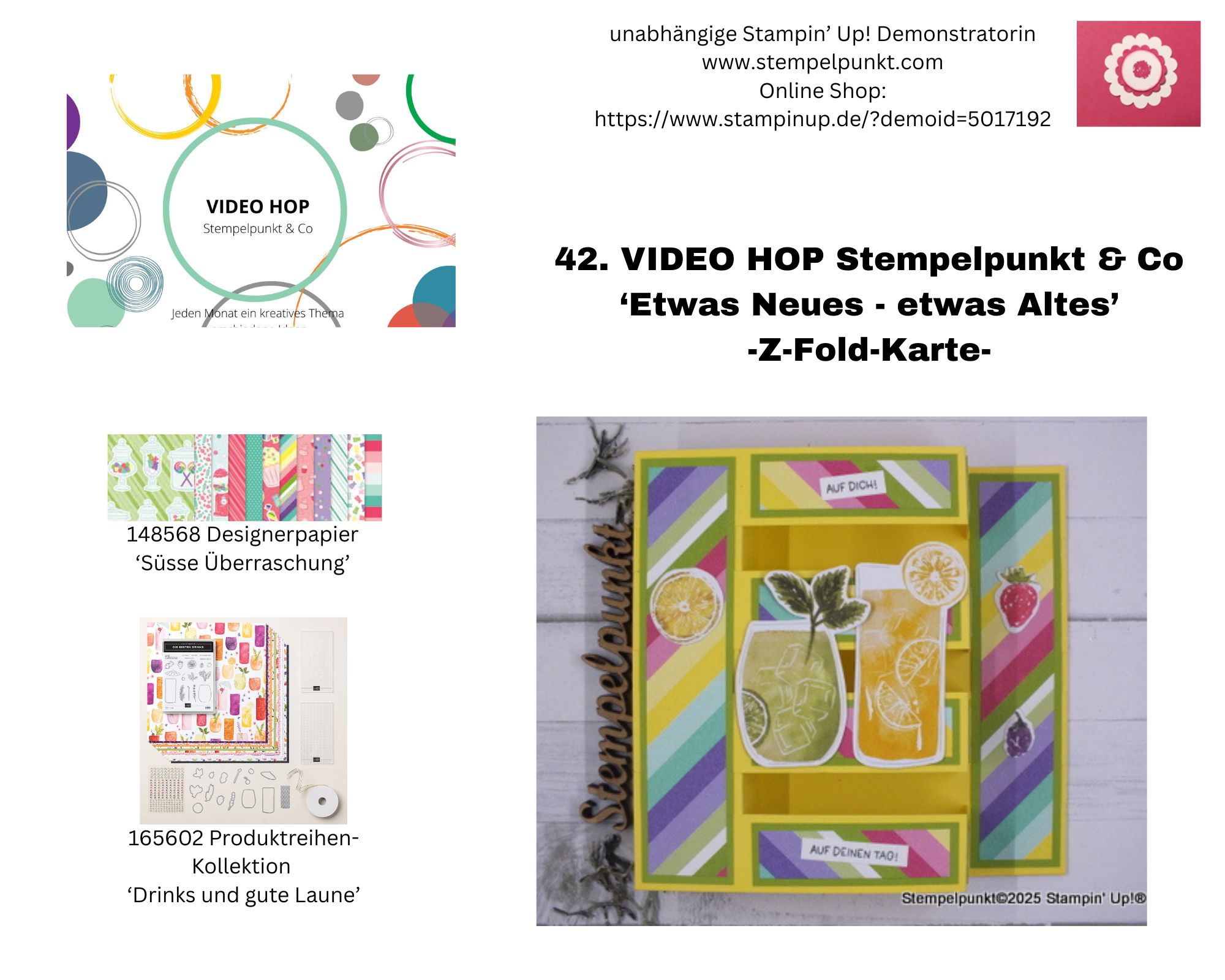Heute gibt es den 39. VIDEO HOP von Stempelpunkt & Co. Einige Stampin‘ Up!-Demonstratorinnen haben sich zusammengetan, um euch an jedem 2. Samstag im Monat jeweils ein Video zu einem vorgegebenen Thema zu zeigen. Unser Thema im April ist ‚Eine besondere Kartenform‘.