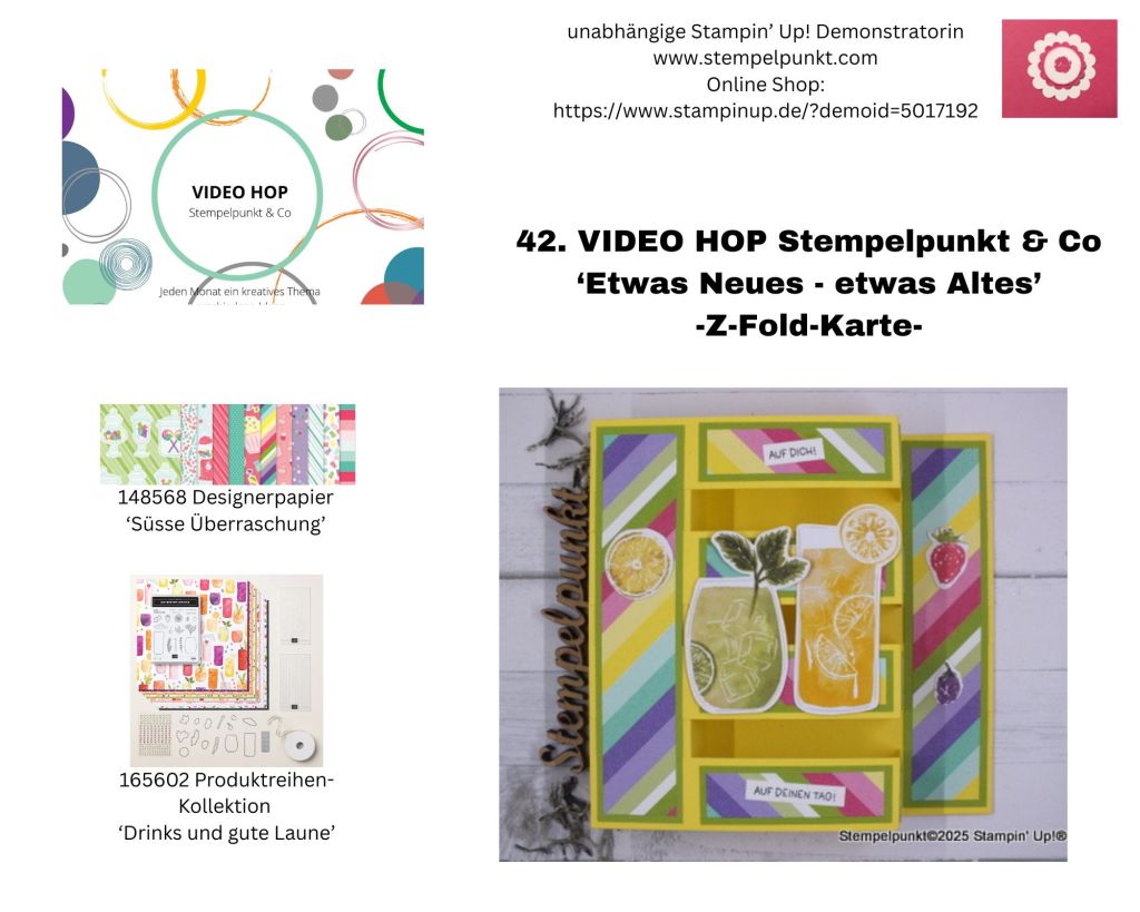 Heute gibt es den 42. VIDEO HOP von Stempelpunkt & Co. Einige Stampin‘ Up!-Demonstratorinnen haben sich zusammengetan, um euch an jedem 2. Samstag im Monat jeweils ein Video zu einem vorgegebenen Thema zu zeigen. Unser Thema im Juli ist ‚Etwas Neues – etwas Altes‘.