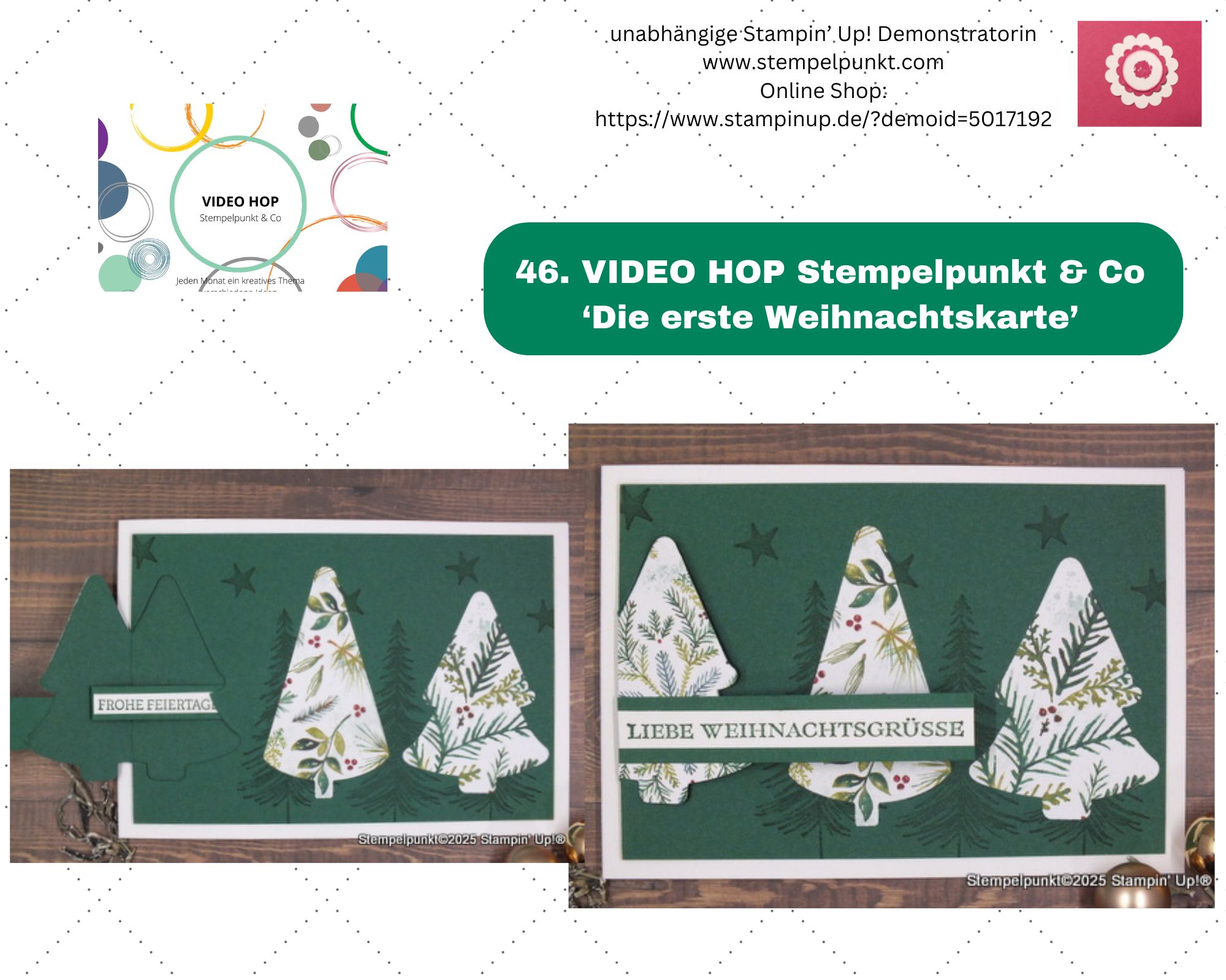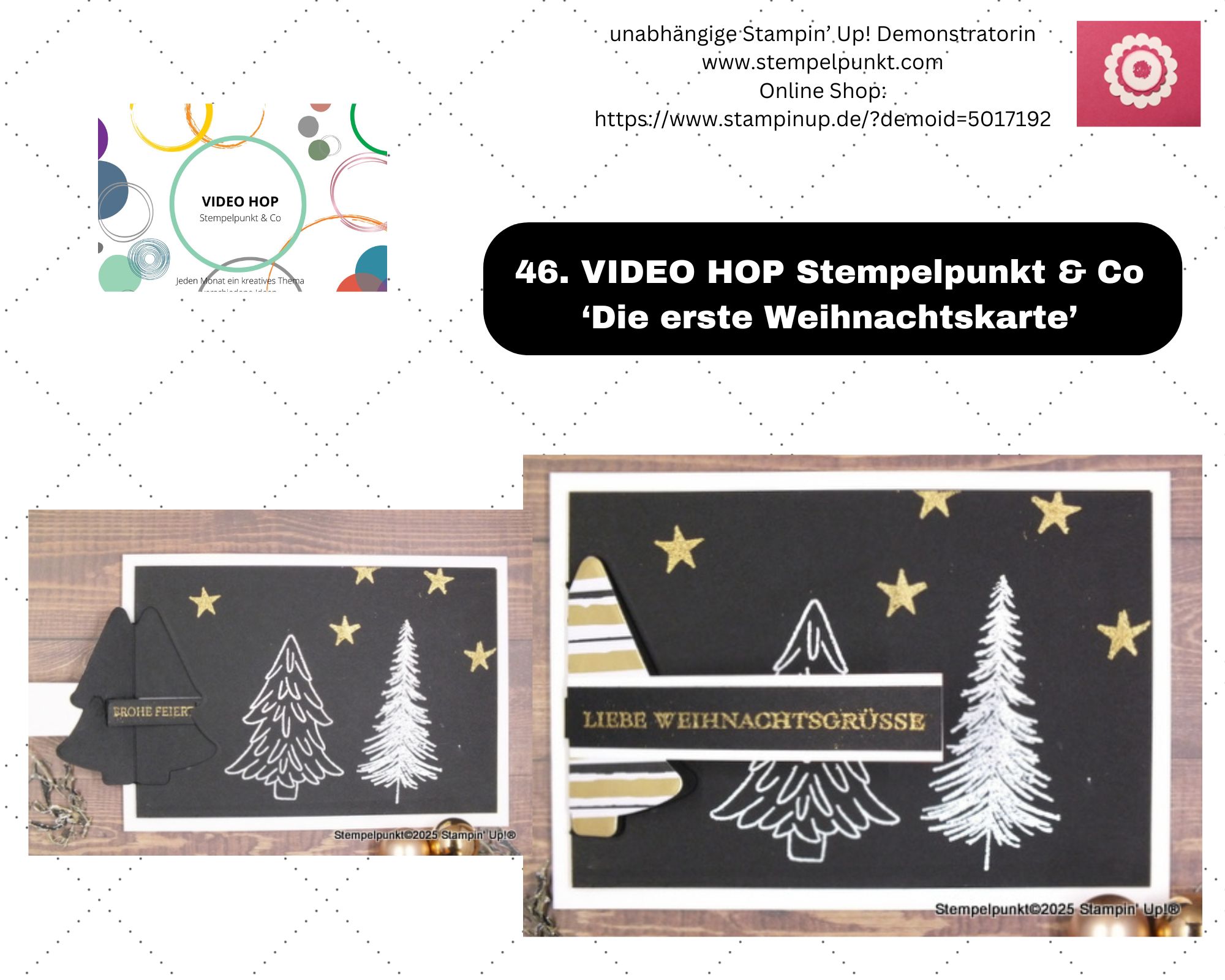 Heute gibt es den 46. VIDEO HOP von Stempelpunkt & Co. Einige Stampin‘ Up!-Demonstratorinnen haben sich zusammengetan, um euch an jedem 2. Samstag im Monat jeweils ein Video zu einem vorgegebenen Thema zu zeigen. Unser Thema im November ist ‚DIE ERSTE WEIHNACHTSKARTE‘.