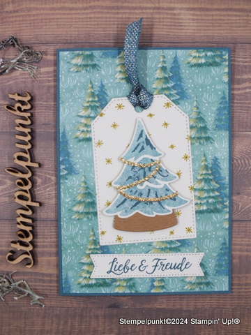 Heute zeige ich noch einmal meine Karte vom letzten Kartensketch (Teamaktion). Ich habe das Stempelset ‚Fröhliche Bäume‘ aus dem Jahreskatalog (Seite 77) verwendet. Die aus dem letzten Jahr übernommenen Produkte werden leicht übersehen. Dabei sind wirklich schöne Produkte dabei.
